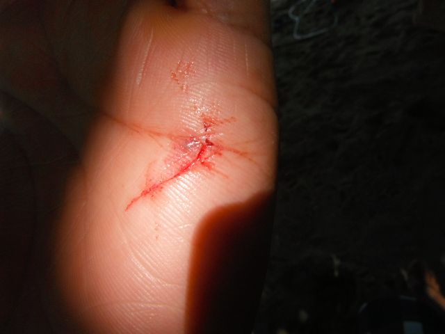 hand touches the bottom. When I resurface, I see that my left hand is bleeding.