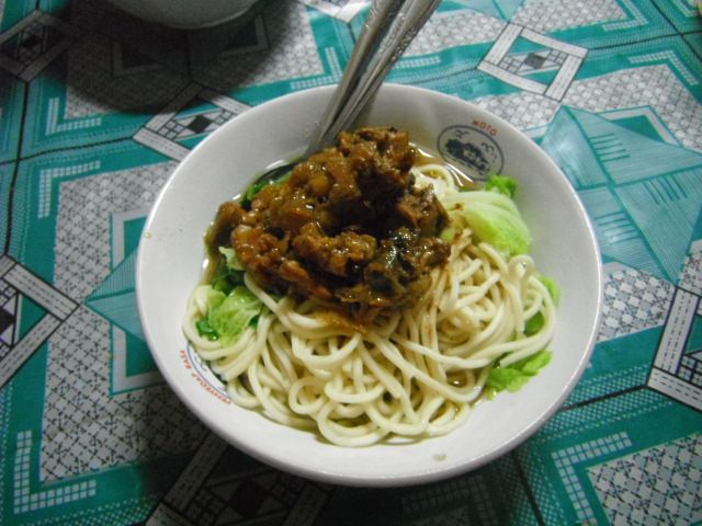 different stalls with all kinds of food. We order the mie ayam, which is