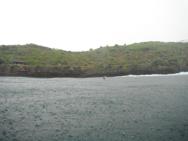We arrived around 1330, and now it’s almost 1600. We’ve surfed over two hours, and it’s been raining at least half of the time. I take a break from eating shit and take some pics from the channel. I want some pics for Al, since he’s one of those guys who doesn’t believe in taking pictures, this day is actually important whether he believes it or not. It’s his last day here, who knows if he’ll be back, and we will all miss him and his stupid antics.