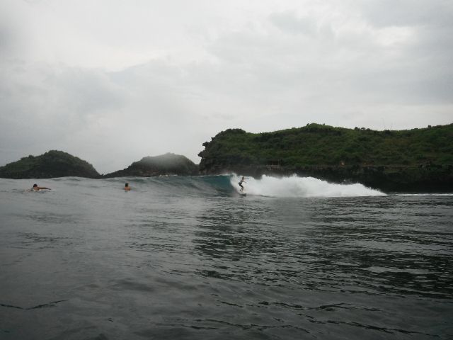“That’s just about the only good wave we’ve seen. That’s me mate out there.”