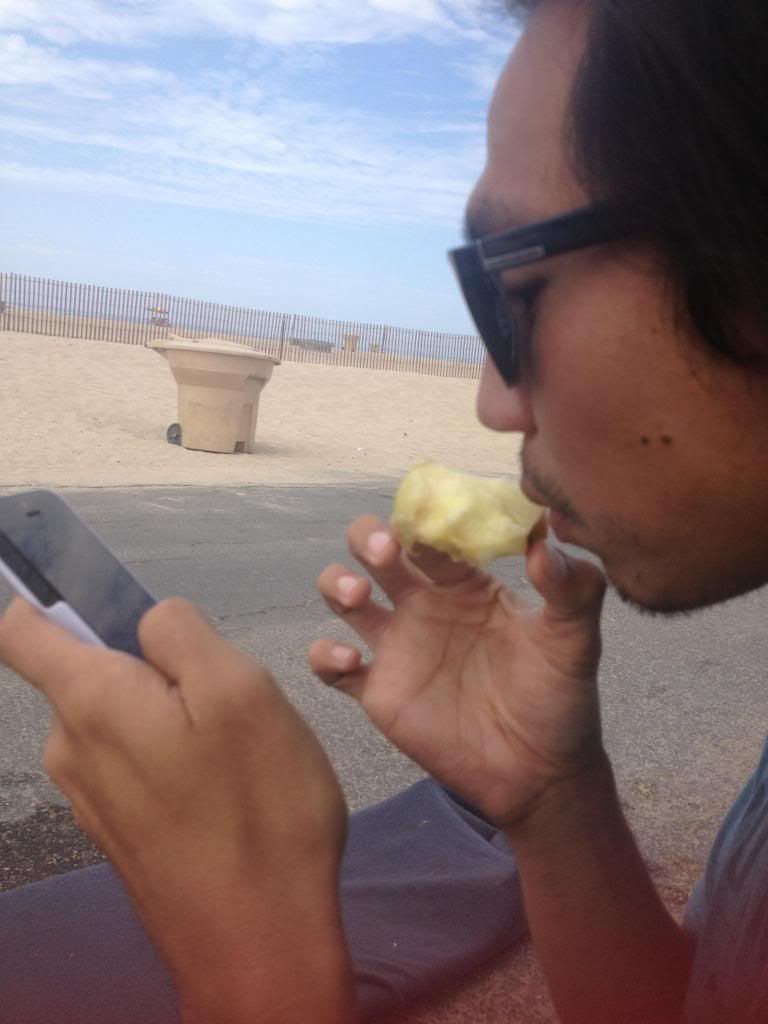 back to the parking lot, snack, and change. We share stories about our waves