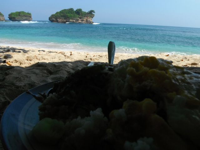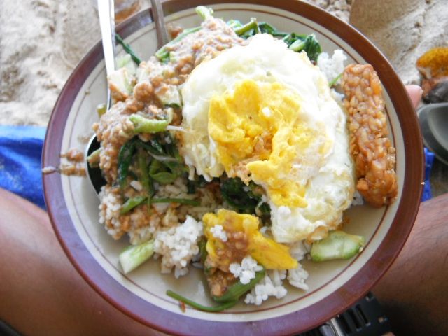 looks turnable. Reese and I grab some nasi pecel with an egg on top of it and