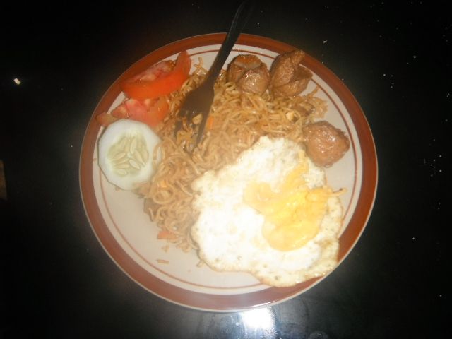 It’s filled with fried noodles and meatballs. “Mie gorang. This is for when you