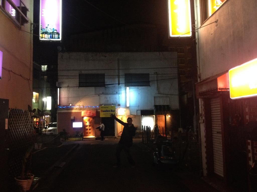 Music blared out from the top of the stairs. Black light lit the stairwell. We pushed through the double doors, and a lone woman stood behind the bar, stools lined up in front. The place was dark, disco ball standard. An empty stripper pole stood in the corner, begging to be straddled by some butt cheeks. Dale and I sat down, got handed a menu, and everything was 500 Yen.
