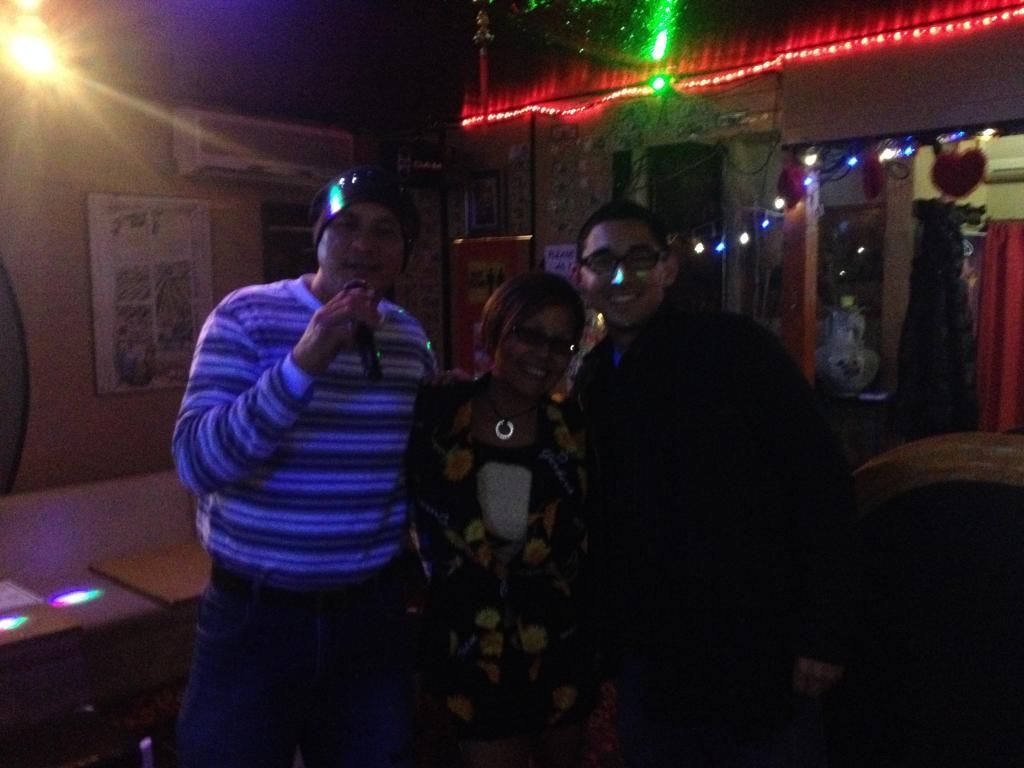 Even though the place was empty, it was warm. There was a menu. They had beer. It felt good to take our jackets off. The Hispanic dude sat down with us, ordered us some beer from the waitress, and said he was a soldier who knew the owner. She was Filipina Peruvian from the Philippines, and she had her bar open that night to throw a Christmas party for her friends.
