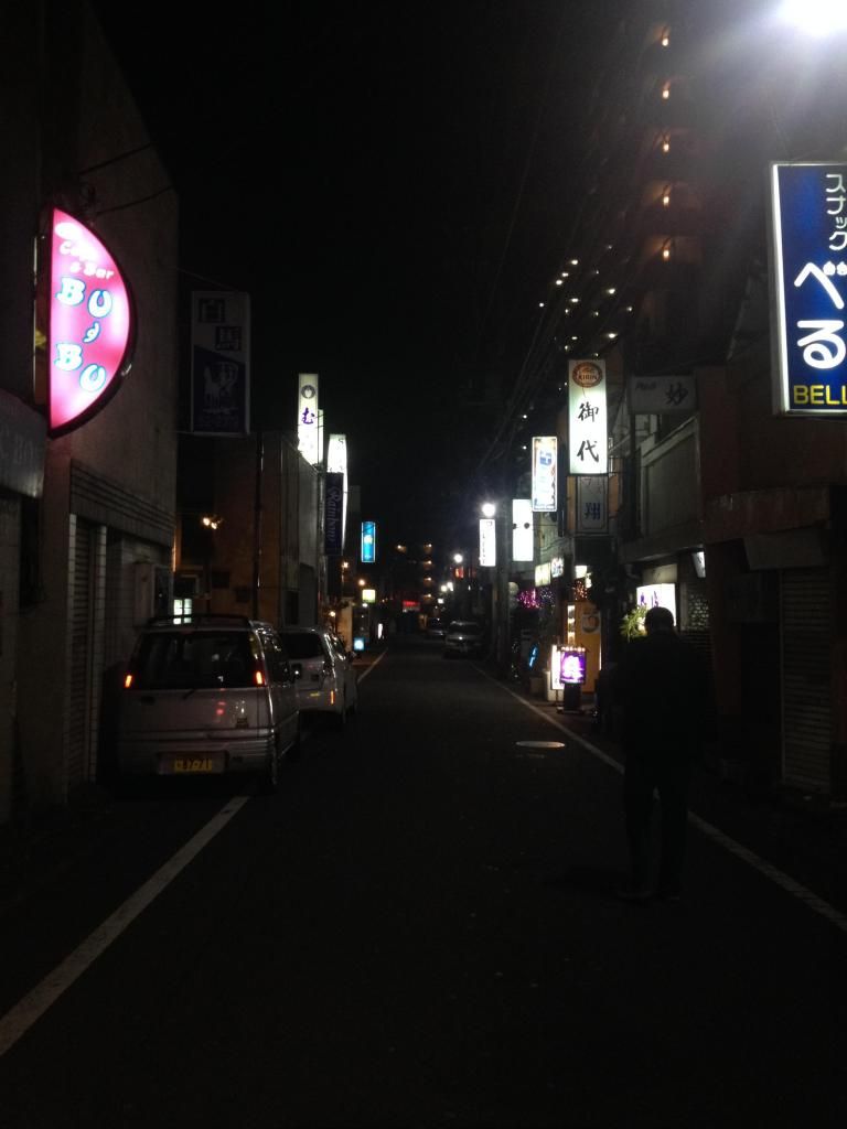 Bar row. . . Signs everywhere, teasing us, showing the names of their watering holes. All closed on a Monday night. The street was dark, straight up back-alley status, anal raping mode, where grown men get turned into little girls. We walked out of the narrow streets and made our way to downtown Fussa where there were more lights. There was a large store called Seiyu, pretty much a Japanese Walmart. We walked through there and looked at some stuff. Japanese girls walked around in short skirts. I guess they don’t fear the cold. People had their facemasks on. Not sure if they were sick or didn’t want to get sick. Didn’t find anywhere to eat. Dale found a Starbucks. Two Japanese chicks two tables down were speaking English but cursing profusely. Fuck this and fuck that. Fuck in every sentence that they spoke. Not sure what was up with that.