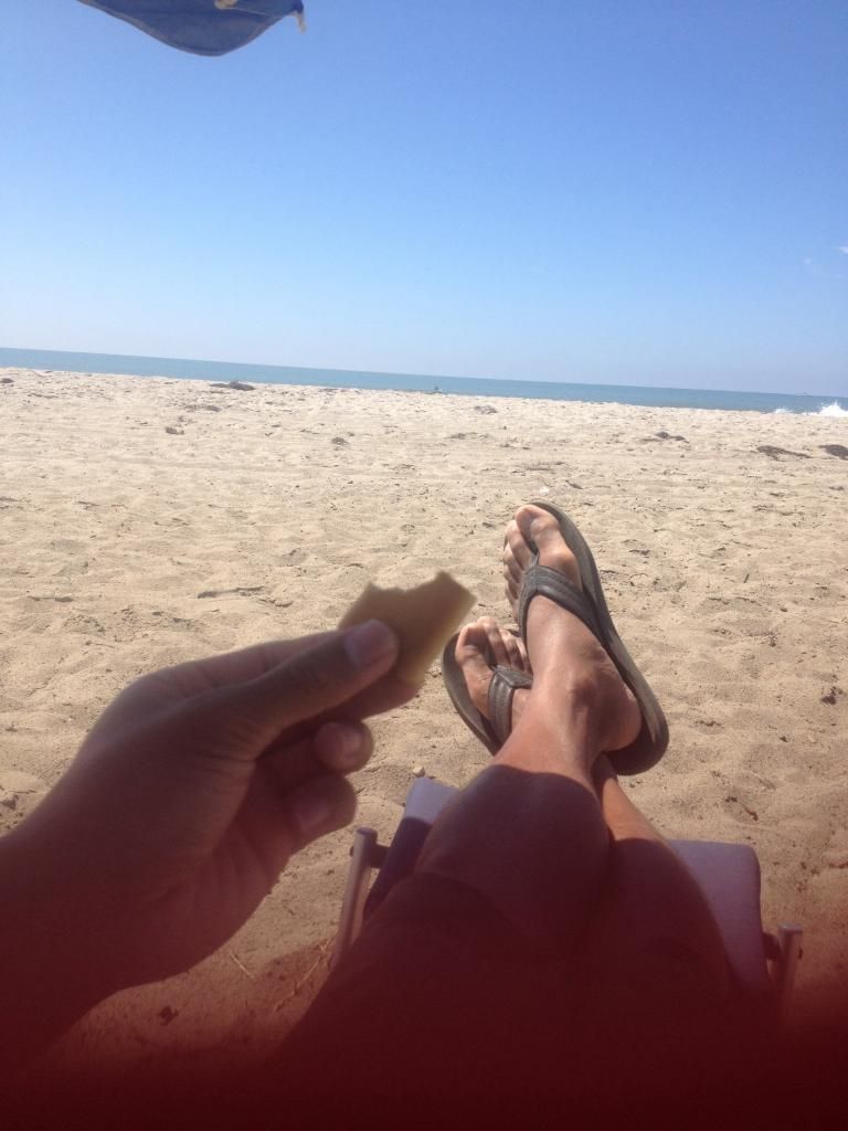 water. Thus far, it’s sitting in my chair, on the sand, under my beach