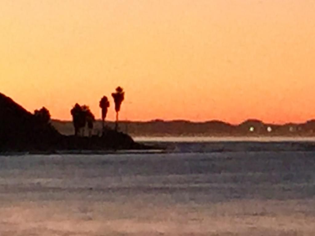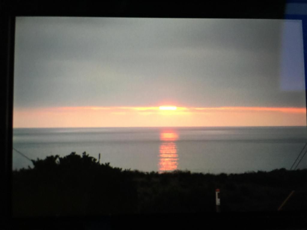 dull metallic gray over the ocean. Peaks are coming through in long lines with