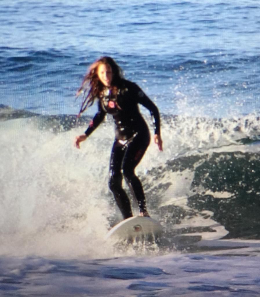 spot her, she’s either just getting off of a wave, on the inside paddling back,