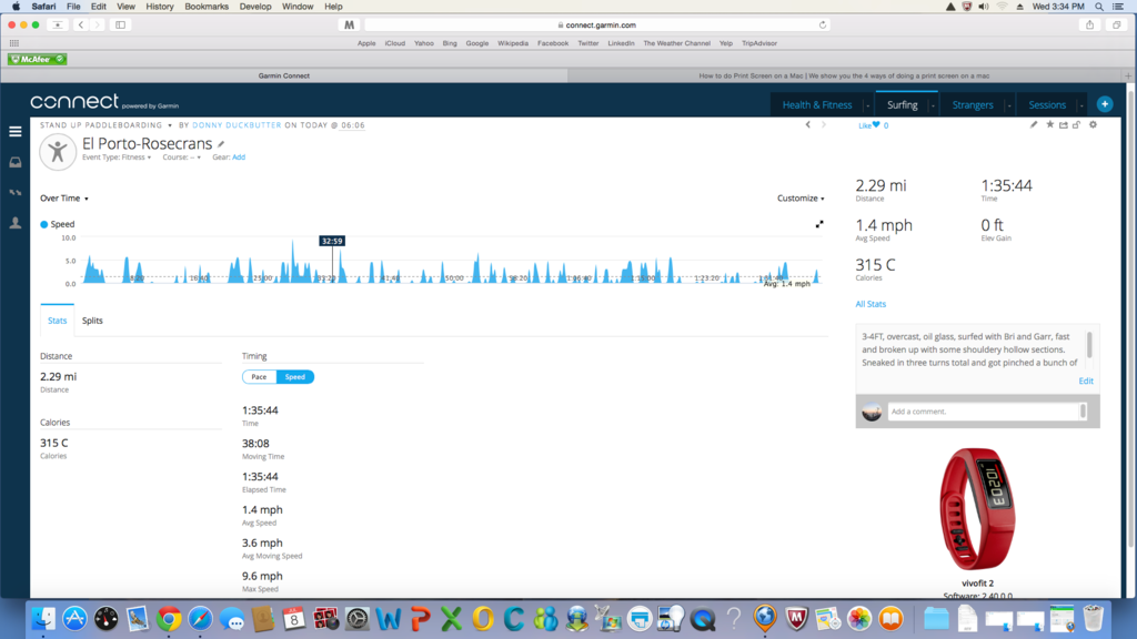 | Compared to all my sessions since June 16th, this morning's session covered the second most amount of distance, also tying my fastest wave at 9.6 mph. |